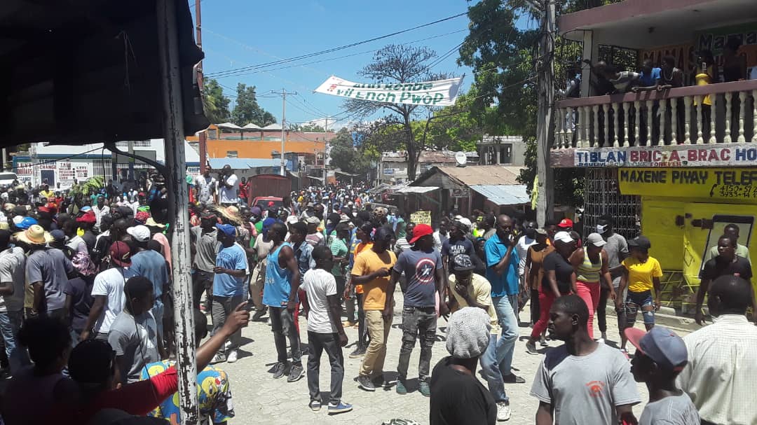 Plizyè kote nan vil la, moun yo rache adoken yo fè barikad ak yo, itilize tout sa yo jwenn sou pasaj yo pou fè barigad, kawotchou t ap boule, wòch ak kout boutèy t ap tire depi byen bonè nan maten.