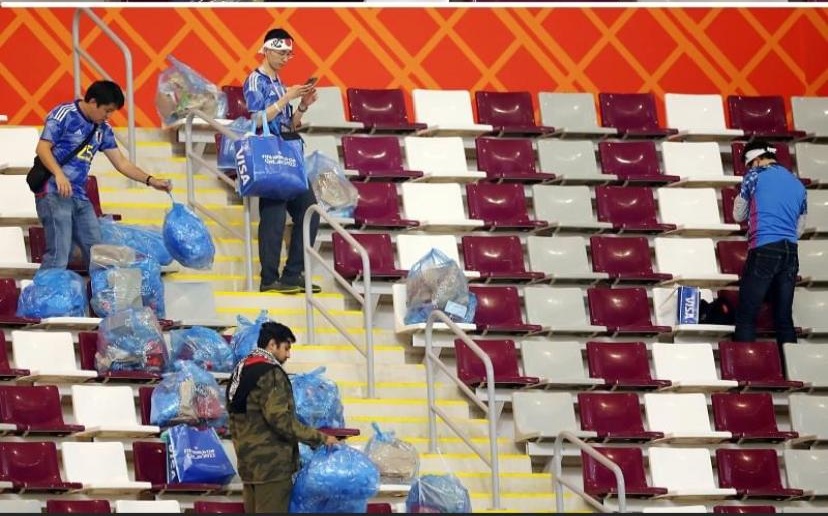 De tout evidans, Japonè yo voye yon vibran mesaj pou mond lan avèk estad yo yon gwoup pami yo fè chwa netwaye aprè chak match yo. Yon mesaj ki senbolize antrèd se youn nan aspè pozitif lòm ta kapab pratike pou mye jere mond lan.