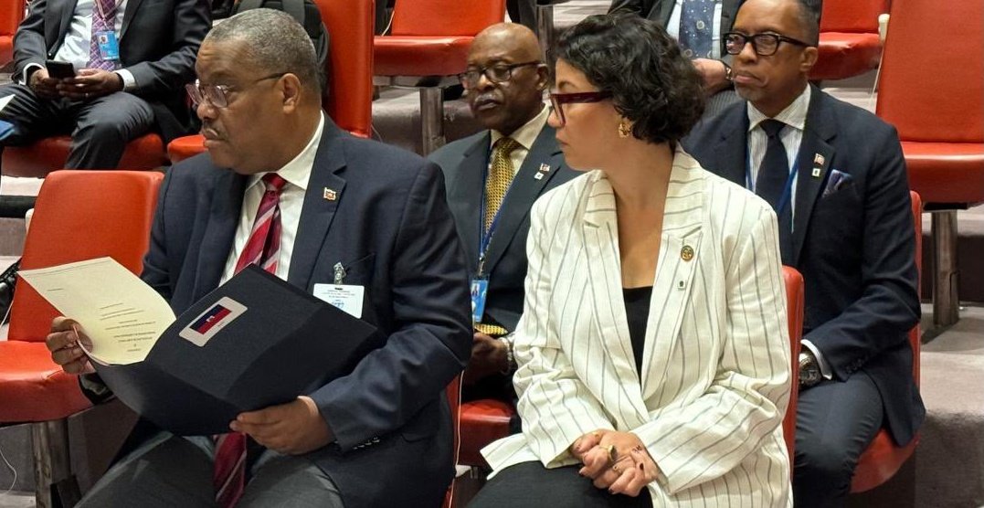 Premye Minis Gary Conille pwononse yon diskou devan Konsèy Sekirite Nasyonzini an 3 jiyè 2024 la kote li bay detay sou sityasyon Ayiti ak travay gouvènman li an ap fè pou rezoud kriz kap trakase Ayiti depi lontan an.