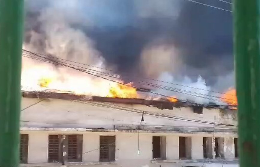 Videyo k ap sikile sou rezo sosyal yo montre yon pati nan lopital la, tout moun konnen sou non Lopital jeneral, anba dife.