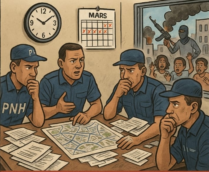 Operasyon PNH la, se tankou yon machin ki sou ralanti depi lontan, ak tout limyè limen, men chofè a chita ap gade glas retwovizè. Se yon grenn pikan sou branch peyi a ki kontinye ap pike chak jou plis pase jou anvan. Èske se laperèz ki mare men yo? Èske se kalkil politik ki mete sab nan bwat? Oswa èske se tèt chaje sistèm lan ki fè tout estrateji vire an won?