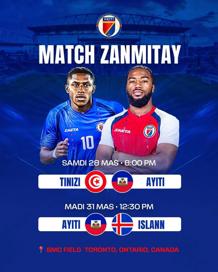 Seleksyon nasyonal la pral dispite 2 match amikal pandan trèv entènasyonal la nan mwa mas, nan kad preparasyon li pou Koupdimonn FIFA 2026 la. Rankont sa yo pral jwe nan Toronto (Kanada).