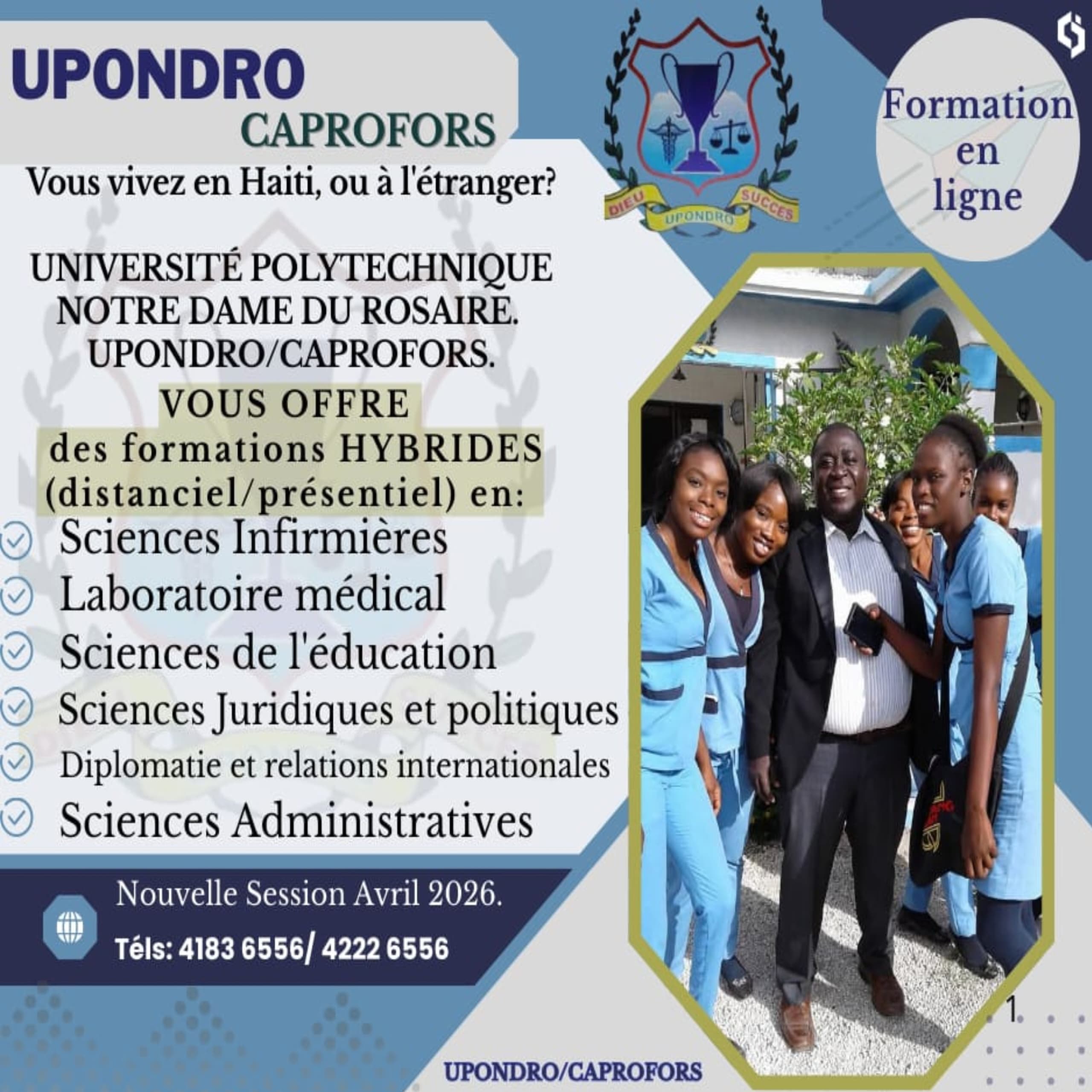 L’Université Polytechnique Notre-Dame du Rosaire (UPONDRO) annonce l’ouverture d’un nouveau programme de formation universitaire articulé autour de l’enseignement en ligne et en présentiel. Cette initiative s’inscrit dans le cadre de la modernisation de l’enseignement supérieur en Haïti et se conforme explicitement aux dispositions du décret portant organisation, fonctionnement et modernisation de l’enseignement supérieur.