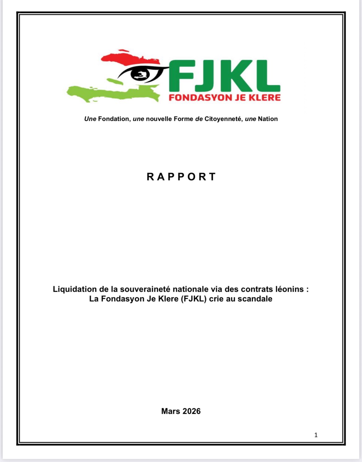 Daprè yon rapò Fondasyon Je Klere (FJKL), Leta ayisyen siyen depi 15 desanm 2025 yon kontra ki dire 50 lane ak konpayi Metric Facility S.A. pou konstriksyon ak jesyon twa prizon modèn nan Sous Matla (Akayè), Mòn Kas (Fòlibète) ak Paskwèt (Jakmèl), pou yon montan plis pase 85 milyon dola ameriken. Akò a prevwa Leta ap peye 22 dola pa jou pou chak prizonye epi garanti omwen 75% kapasite okipasyon sant detansyon yo. Nan menm rapò a, FJKL soulve kestyon sou transparans nan jesyon lajan piblik apre twa vèsman total 150 milyon goud otorite yo te otorize bay Université Quisqueya pandan ane 2025.
